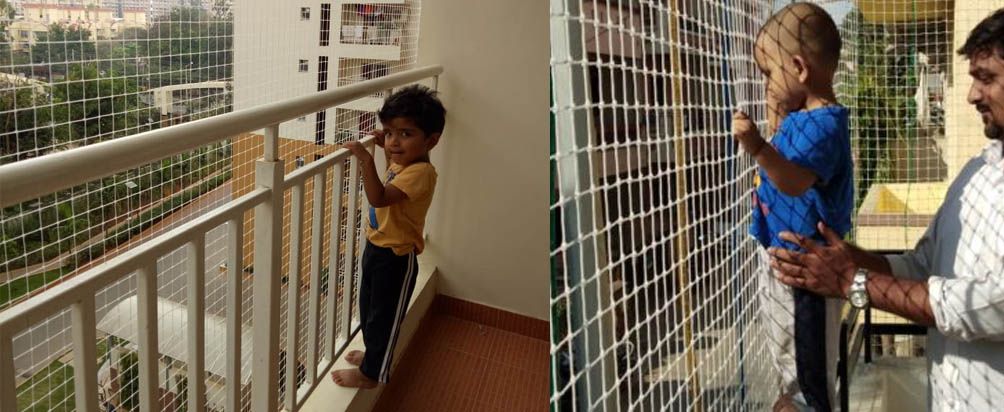 Our products can do child proof at most every open space, stairs, balcony and window. Enjoy fresh air when keeping your home safe for toddlers and babies. For another layer of balcony safety nets, consider installing restrictions on your balcony doors, preventing kids from going out into the balcony alone. Don’t be panic get install Srujana children safety nets, though it has special expertise in fixing children safety nets for balconies.